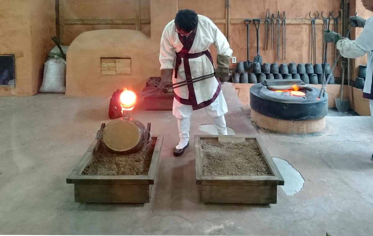 Démonstration de la technique de fonte de caractères métalliques coréens.