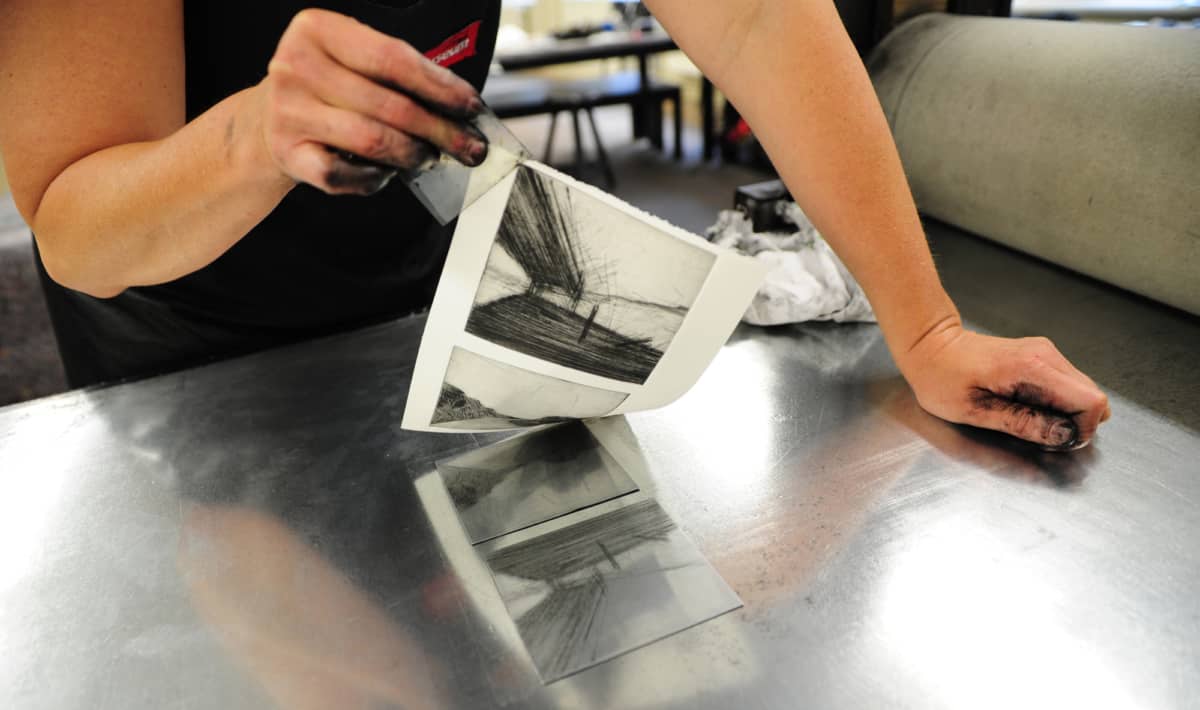 Leipzig, Druckkunst Museum, Maschinen, Druckerei, Museum, Handwerk, Drucktechnik, Setzkasten, Buchstaben, Papier, Farbe, Druckmaschinen, Letter, Papier, Antiquitäten, Druckprozess, Historie, Kunst, Ausstellung, Schriftgießerei, Handgießinstrument, Matrizen, Komplettgießmaschine, Stahlstempel, Druckpressen und Druckmaschinen, Karin Pietschmann, Künstlerin, Kunst 16.7.2014 Foto: Dieter Grundmann/Westend-PR Westend. Public Relations GmbH, Schwägrichenstraße 23, 04107 Leipzig, Telefon: 0341 - 3338131, E-Mail: mm@westend-pr.de, Deutsche Bank BLZ 860 700 24, Konto-Nr. 1334499, Steuer-Nr. 231/122/05519, IBAN: DE14 8607 0024 0133 4499 00, BIC: DEUTDEDBLEG