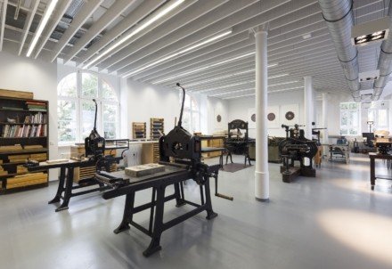 This is the AEPM conference, so we all deal with printing somehow, usually from a historical point of view. The Klingspor Museum primarily collects the products of printing, especially printed artworks, for example by Wilhelm Neufeld, Hendrik Nicolaas Werkman or Frans Masereel. We also collect modern and contemporary book and type art, this means artists books, illustrated books, childrens books, tapestries, calligraphy, type design, communication design, posters and so on, beginning in the year 1900. We take care of about 80,000 items, a very important collection which includes the type designs of the typefoundry Gebr. Klingspor, which previous to 1906 was known as Rudhard’sche Gießerei (Rudhard Typefoundry). The typefoundry suffered huge damage in World War 2, so a great amount of archive materials have been destroyed, but we still have a decent collection of type specimens and process material we can work with. And we also have a printing workshop with machines for letterpress printing, lithography and engraving that is used by artists as well as for our educational programs (Picture 1). It’s a place I’m personally very fond of, and it is with no doubt a beautiful place, but with an anachronistic air, I have to admit.