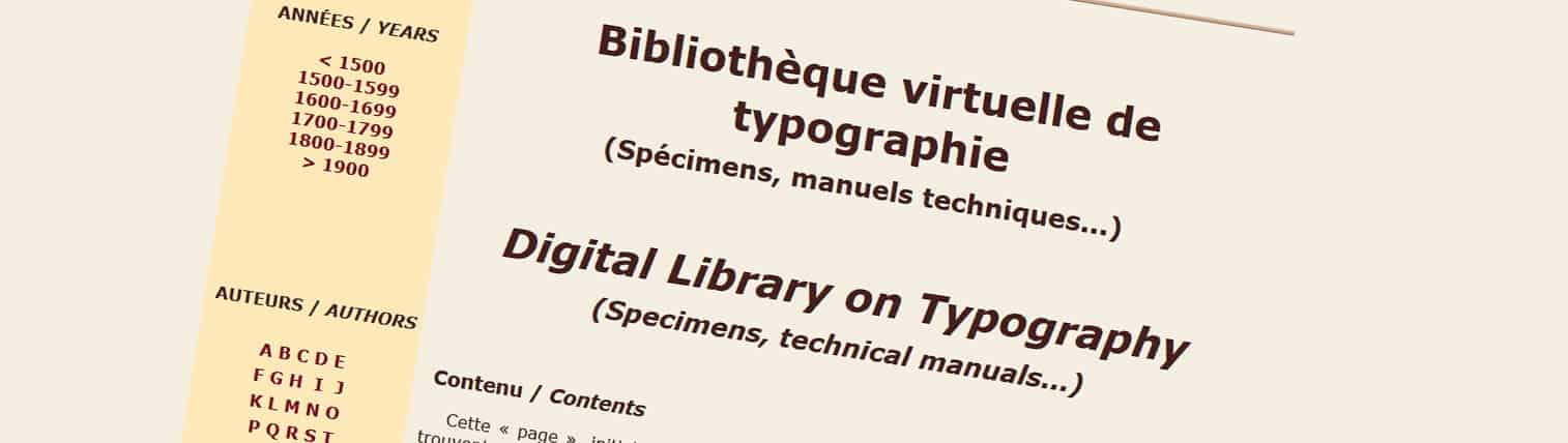 Jacques André, grand spécialiste et auteur de nombreux ouvrages et articles sur la typographie traditionnelle et numérique vient de mettre à jour sa Bibliothèque virtuelle de typographie qui offre une large panoplie de sources bibliographiques en-ligne utiles pour toutes celles et tous ceux qui s’intéressent à l’histoire de la typographie. Amorcée en 2008, cette ressource était initialement consacrée aux spécimens et manuels de typographie qui se trouvent sur le web. Aujourd’hui elle a été étendu pour couvrir d’autres sortes d’ouvrages : études historiques, magazines et périodiques, exemples remarquables d’ouvrages imprimés, ouvrages consacrés à la bibliologie, à l’écriture, à la calligraphie et à la lecture, et à la langue française.