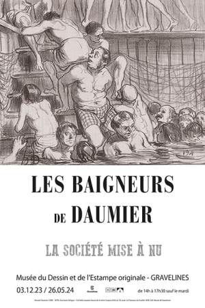 À l’approche des jeux olympiques de Paris, le Musée du dessin et de l’estampe originale (Gravelines, France) a réuni et acquis 96 lithographies d’Honoré Daumier, sur le thème des débuts de la natation. Daumier est l’un des illustrateurs les plus mordants du célèbre journal satirique Le Charivari, ses compositions audacieuses et son écriture abrégé font de lui un artiste moderne. Il porte un regard aiguisé sur les aventures et mésaventures des baigneurs et témoigne d’une époque lointaine (les années 1840-1850), où les citadins commencent tout juste à envisager l’intérêt hygiénique d’une pratique « sportive ». Naïfs et maladroits les premiers nageurs sont mis en scène dans de nouveaux lieux : les stations balnéaires et les bains froids sur la Seine, ancêtres de nos piscines.