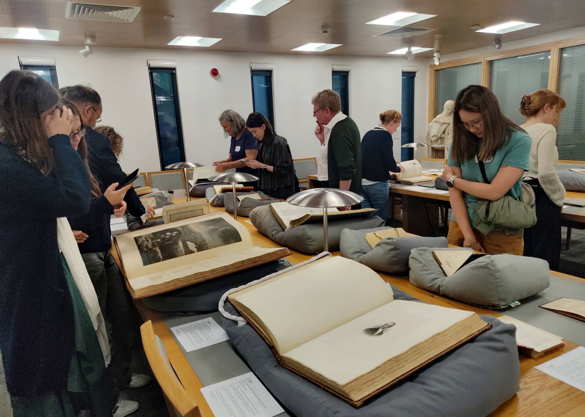 Ce lieu de recherche abrite une magnifique collection de livres rares, manuscrits, archives, photographies… Voici quelques livres sélectionnés que nous avons pu observer et manipuler : des ouvrages avec des dorures, des papiers marbrés, des illustrations en chromolithographie, des anecdotes amusantes, des références aux grands imprimeurs britanniques, etc…