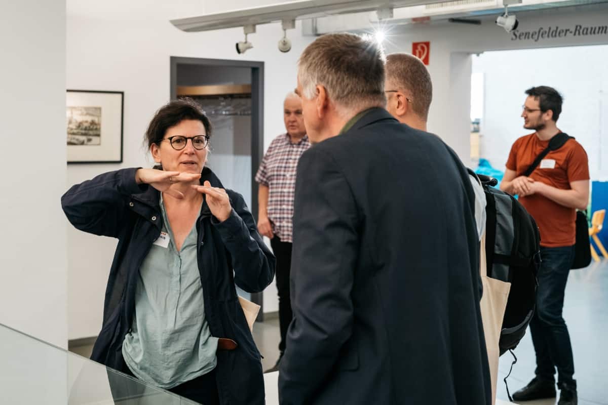 Katharina Walter of the Museum für Druckkunst Leipzig discusses the finer points of something with Stefan before the proceedings begin...