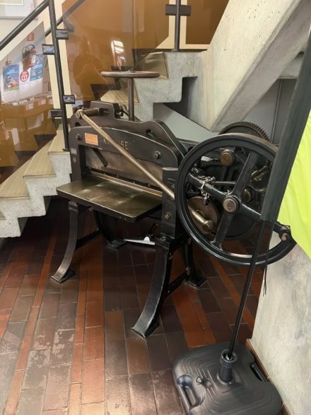 Kraus guillotine (serial number 164404) originally acquired from the Hotterbeekx printing printing company in Maaseik (Belgium) by the artisan bookbinder Rik Vanholen who donated it in the 1980s to the library of Maaseik which has displayed it since as a showpiece in its entrance hall. The library is now being being refurbished and unfortunately will…