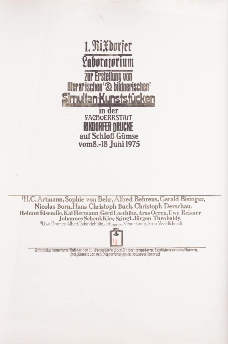 1. Laboratorium zur Erstellung von literarischen und bildnerischen Simultan-Kunststücken, 1975.