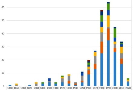 A graphic overview of the creation of printing and graphic heritage organisations, by sector of activity and by decade from the 1840s until the present day is to be found here.