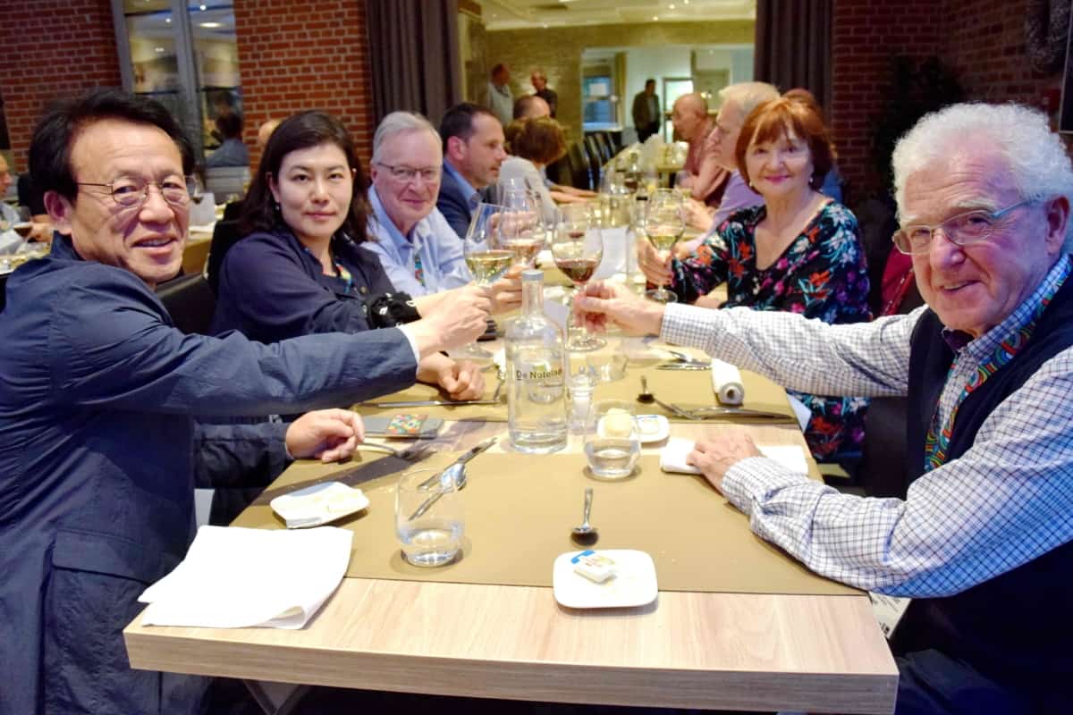 The Friday evening dinner. Young-tack Ho and Sonya Yang from the Early Printing Museum (South Korea) with Ronald and Madame Steur, Stichting Lettergieten 1983 / Typefoundry Westzaan (Netherlands) and Uwe Breker (Germany)