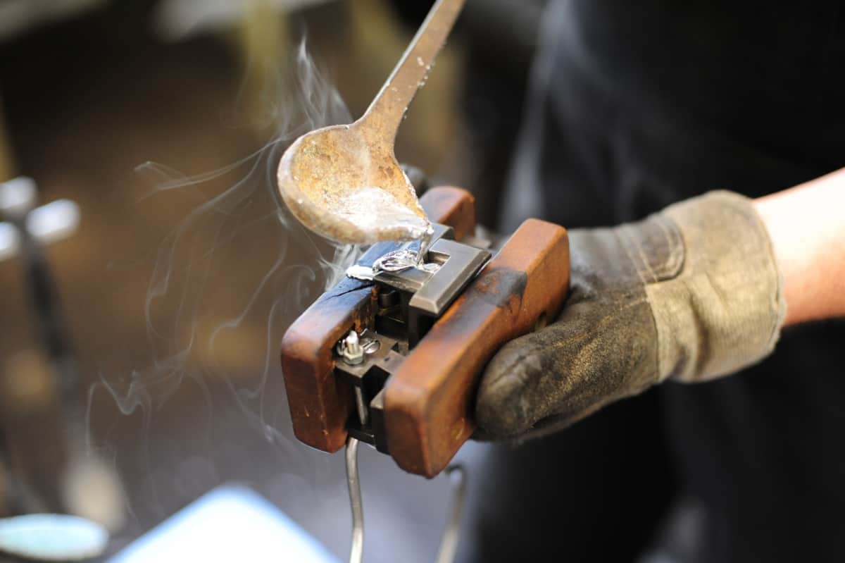 Leipzig, Druckkunst Museum, Maschinen, Druckerei, Museum, Handwerk, Drucktechnik, Setzkasten, Buchstaben, Papier, Farbe, Druckmaschinen, Letter, Papier, Antiquitäten, Druckprozess, Historie, Kunst, Ausstellung, Thomas Kurz, Schriftgießerei, Handgießinstrument, Matrizen, Komplettgießmaschine, Stahlstempel 16.7.2014 Foto: Dieter Grundmann/Westend-PR Westend. Public Relations GmbH, Schwägrichenstraße 23, 04107 Leipzig, Telefon: 0341 - 3338131, E-Mail: mm@westend-pr.de, Deutsche Bank BLZ 860 700 24, Konto-Nr. 1334499, Steuer-Nr. 231/122/05519, IBAN: DE14 8607 0024 0133 4499 00, BIC: DEUTDEDBLEG