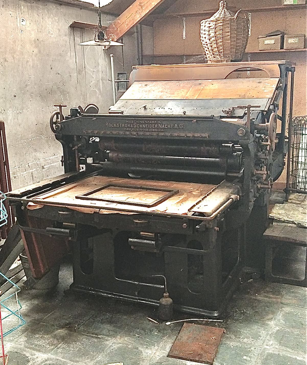 Je dois vider un atelier de mon père dans lequel séjourne depuis 80 ans une presse exceptionnelle produite en peu d’exemplaires car cette presse est arrivée en production quelques années avant de voir les premières automatisations de marges du papier.