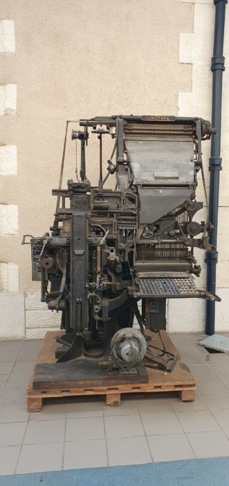 Elle est signée Company pour la Société Linotype (New York, Mergenthaler Linotype), 1907. Ce type de machine a été utilisé en France pour l’impression de journaux (notamment La Petite Gironde et Le Moniteur du Puy-de-Dôme).