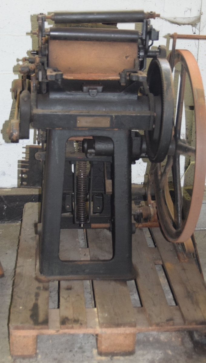 24 - Platen press with manual feed and motor. Rockstroh-Werke. Factory # 151514. Type: 45. 20th century