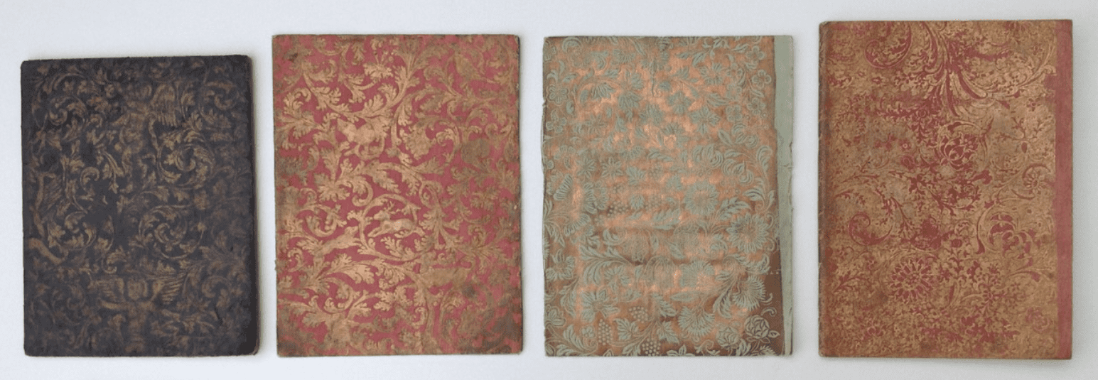 The exhibition includes over 200 papers from the early 18th century to the present day from Germany, Italy, France and Britain. A variety of techniques were employed including engraved metal plates, carved fruitwood blocks and lithography. From the sumptuous gold and silver to the most humble serving only to disguise printers’ waste, they all found a place in the book trade hierarchy.