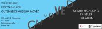 Am Eröffnungswochenende von „Gutenberg-Museum MOVED“ gilt am 23. und 24. November kostenfreier Eintritt, es werden Kurzführungen der Kuratorinnen, Druckvorführungen sowie ein museumspädagogisches Druckangebot im Druckladen angeboten. Ebenso haben die Gäste die Möglichkeit den Gutenberg-Shop der Gutenberg Stiftung mit Café im Museumspavillon zu den Öffnungszeiten des Museums zu besuchen. Für die Kurzführungen der Kuratorinnen ist keine Anmeldung erforderlich.