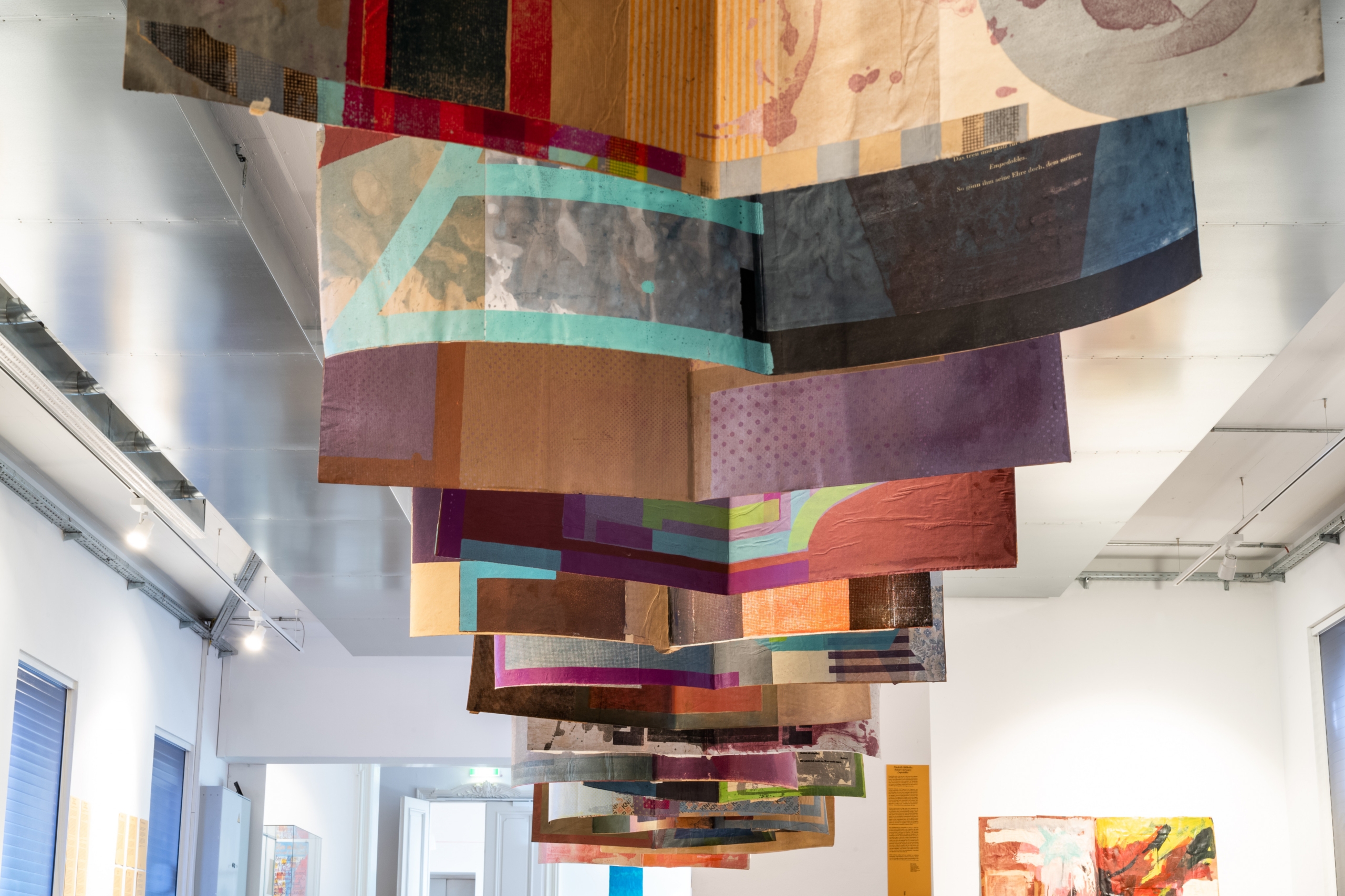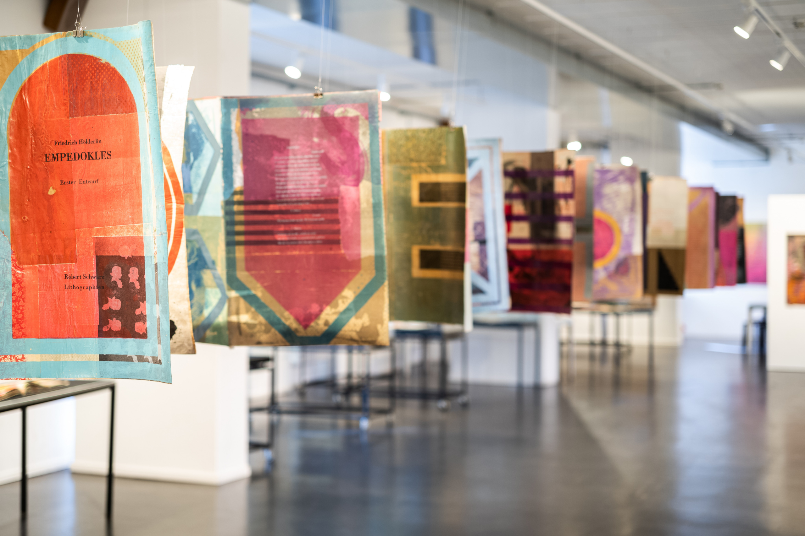 colour spaces in combination with selected, often collaged papers. His books are produced in small editions, often as a unique series. Friedrich Hölderlin plays a special role among the authors he has chosen. With his life and work, the eloquence of the poet, but also with the feeling of not being sufficiently understood and accepted, Schwarz seeks a confrontation that has lasted for years. Solo exhibition and several extensive participations at the Klingspor Museum.
