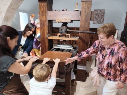 In this way we unite a glorious past (with the facsimile of Tirant), the present of a digital printer incorporated into the Museum, and the works related to design and the future of some children already enthusiastic about printing and who enjoyed printing them with our press. of Gutenberg”