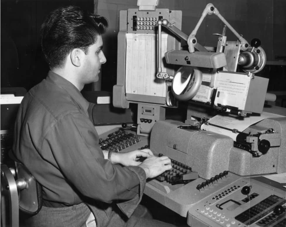 Lumitype 200 phototypesetting machine as used in the late 1950s. (Photo: Musée de l’imprimerie et de la communication graphique).