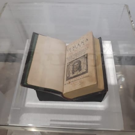 En conmemoración de los 500 años del nacimiento de Cristopher Plantin, hemos expuesto junto al panel en el que este gran impresor tiene su referencia en el Museo, la novela La casa del Compás de Oro de nuestra Senadora Begoña Valero que refiere la biografía y el entorno histórico en el que se desarrolló su vida. Junto a él, unos Oficios de Semana Santa impresos en Amberes en 1752 en la Imprenta Plantiniana que ha donado al Museo nuestro Senador Juan Castelló Mora a quien se la agradecemos.