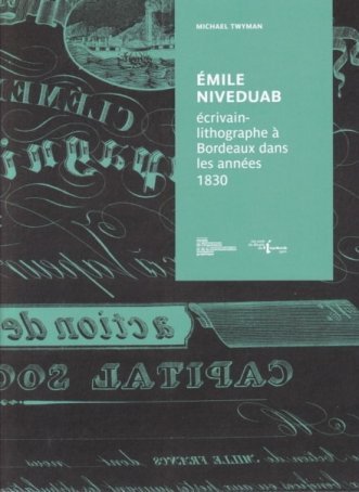 Le dernier ouvrage de Michael Twyman vient de paraître sous le titre Émile Niveduab, écrivain-lithographe à Bordeaux dans les années 1830. A travers l’étude d’une vaste collection privée d’éphémères lithographiés – principalement des travaux de ville réalisés à Bordeaux dans les années 1830 par Émile Niveduab (1796–1877), originaire d’Alet-les-Bains dans l’Aude, Michael Twyman explore pour la première fois le rôle de l’écrivain-lithographe, un artisan de premier plan dans la production française d’imprimés lithographiques au XIXe et au début du XXe. Formé à Paris, Niveduab revient à Bordeaux où il travaille d’abord pour l’imprimeur Faye, puis à son compte. L’analyse de quelque 500 travaux, à la lumière de recherches archivistiques, permet de brosser un tableau vivant du parcours de Niveduab et de sa production comme écrivain-lithographe et lithographe. Sa production – factures, listes de prix, cartes de visite, publicités et étiquettes – détaille et met en évidence l’intense activité économique de Bordeaux dont, bien sûr, le commerce du vin. Les travaux de cet artiste retrouvé témoignent aussi de ses extraordinaires compétences de dessinateur, de sa maîtrise de l’art d’écrire et du lettrage à l’envers sur pierre. Abondamment illustré, l’ouvrage présente les productions de Niveduab en les replaçant toujours dans le contexte de l’histoire de la lettre et du dessin de lettres, et à la lumière des témoignages fournis par les contemporains de Niveduab sur l’art de l’écrivain-lithographe.