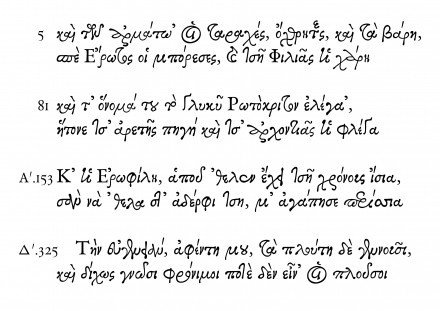 Another attempt to define the course of Greek typographic developments came at almost the same time. In the 1490s Nicolaos Vlastos, a Cretan merchant, collaborated with Zacharias Kalliergis, a gifted Cretan scribe and type cutter, to produce four magnificent books in which a new model of type design was proposed. It was equally beautiful and demanding in technical expertise as those of Aldus’, but the short-lived presence of their publishing company could not rival the enduring Aldine hegemony.