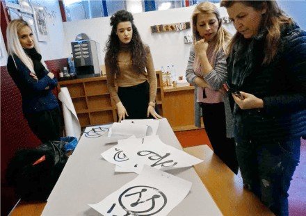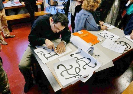 It is this “discrepancy” in the Greek printing continuum that my “type-artistic” proposition attempts to redress. A “what if” scenario to be re-introduced today in a way that Cretans will reconnect with a glimpse of their past: Therefore, “what if” these two Cretan poems of high artistic quality had actually been composed and printed using the best Cretan calligraphy-come type of the same period: the Grecs du roi? In addition, I concluded that a mere font replacement in the verses for a new edition of the poems would only be of interest to a small circle of print enthusiasts, but leaving the general public unaware. Searching for a formula to communicate to a wider scale the artistic synergy of two great Cretan achievements, I sought the help of my Cretan students at the Department of Graphic Design in Athens and the cooperation of the Secondary Education Authority in Crete. My idea was that teachers and pupils throughout Crete should be exposed more to the cultural achievements of their forefathers in meaningful and creative ways. What if they would organize in groups of volunteers and paint several stanzas of the two poems as Street Art in their schools and neighbourhoods. My proposition was enthusiastically adopted by Areti Marmataki, Artistic Coordinator of the Chania Secondary Education Board, who along with the Chairman, Stylianos Zervakis effectively secured the official approval from the Ministry of Education. She and a team of dedicated teachers have created the administrative network necessary for the operation. In January, a short seminar and a workshop were organized in Chania, hosted at the Printing Museum, where teachers from many cities and some local pupils came to learn about Greek printing history, the goals of the project and to be acquainted with graffiti and other techniques for Street art. Several of my Cretan students in the Department of Graphic Design at the Technical Educational Institute of Athens, under the energetic direction of Olga Bitsaki, formed the group “Typotropion” and operated as volunteers with the local schools of the island providing artistic and technical support. In effect, we have created several school groups in the four major cities of Crete: Chania, Rethymnon, Iraklion, and Sitia; during April and May 2017 the pupils have started canvassing their cities creating stanzas on many walls and common areas. The project will continue to operate over the next academic year and we hope that it will bring the Cretan poetry and typography back to the local communities in an alternative artistic recreation of their past.