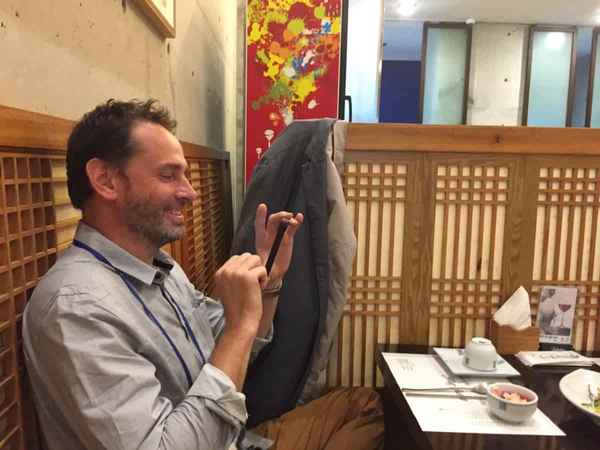 Robin Boone checking his email... or is he photographing the next dish?